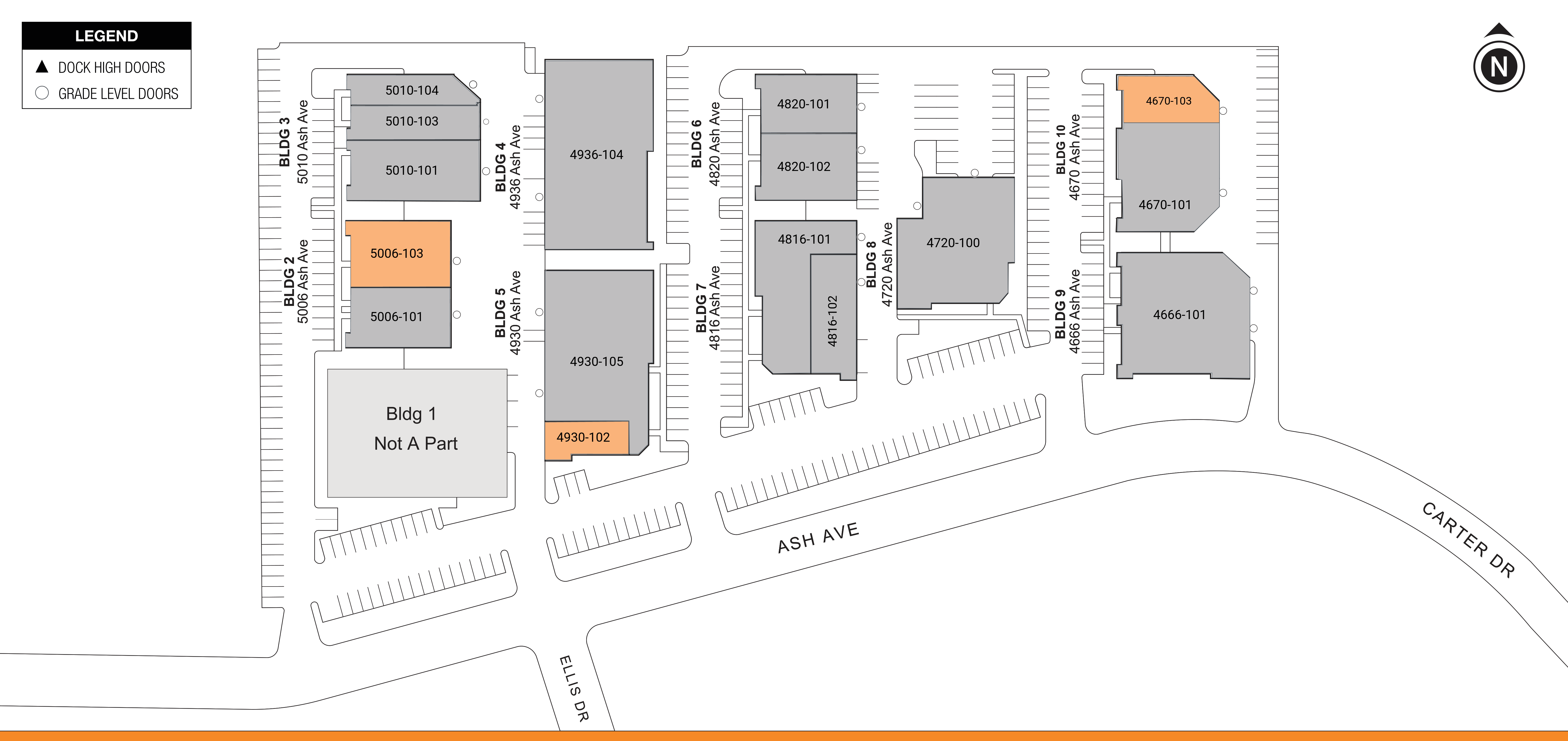 | BUILDING | SUITE | Total size | Office Size | Office % | Type | Clear HT. | GL | DL | Floor plan | Photos |