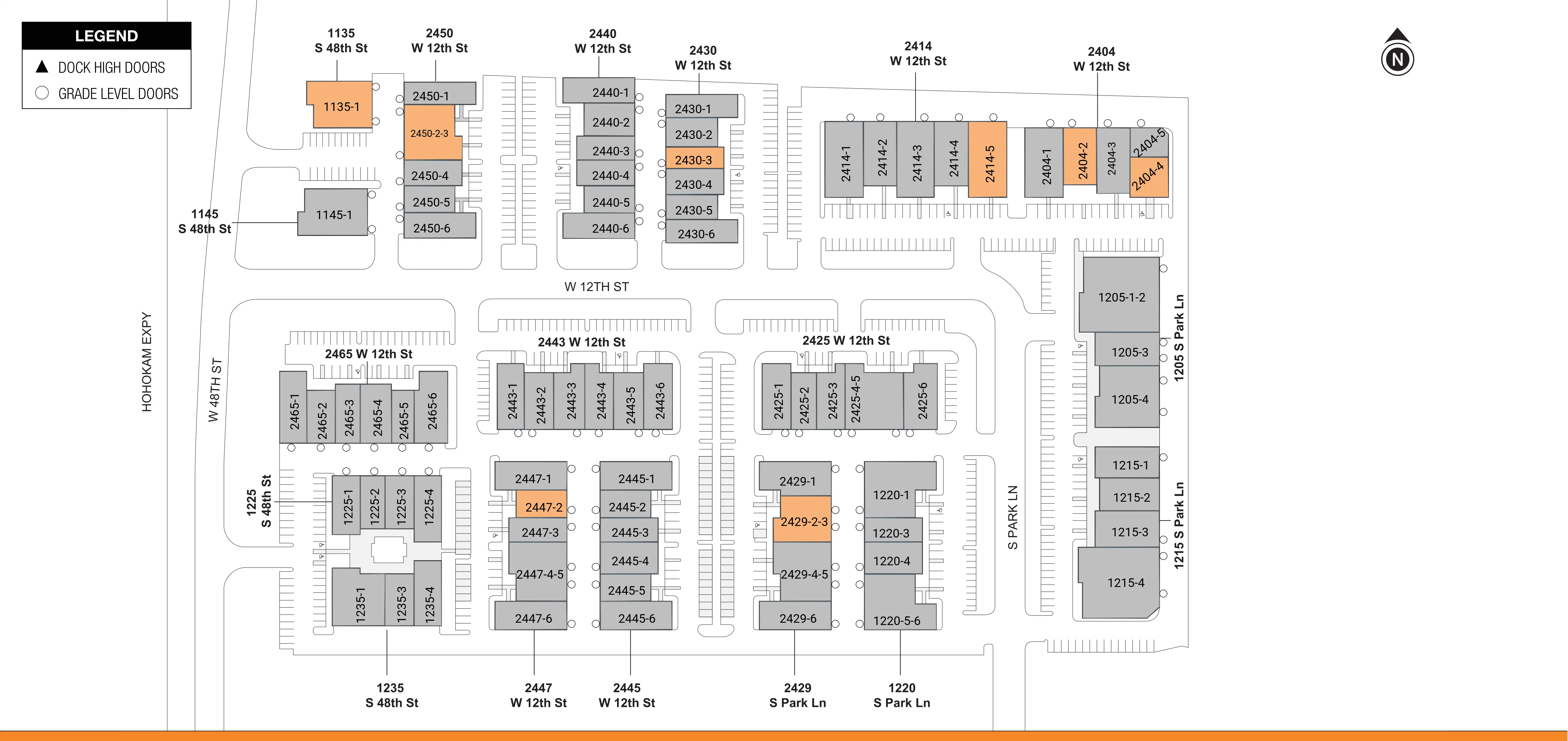 | BUILDING | SUITE | Total size | Office Size | Office % | Type | Clear HT. | GL | DL | Floor plan | Photos |