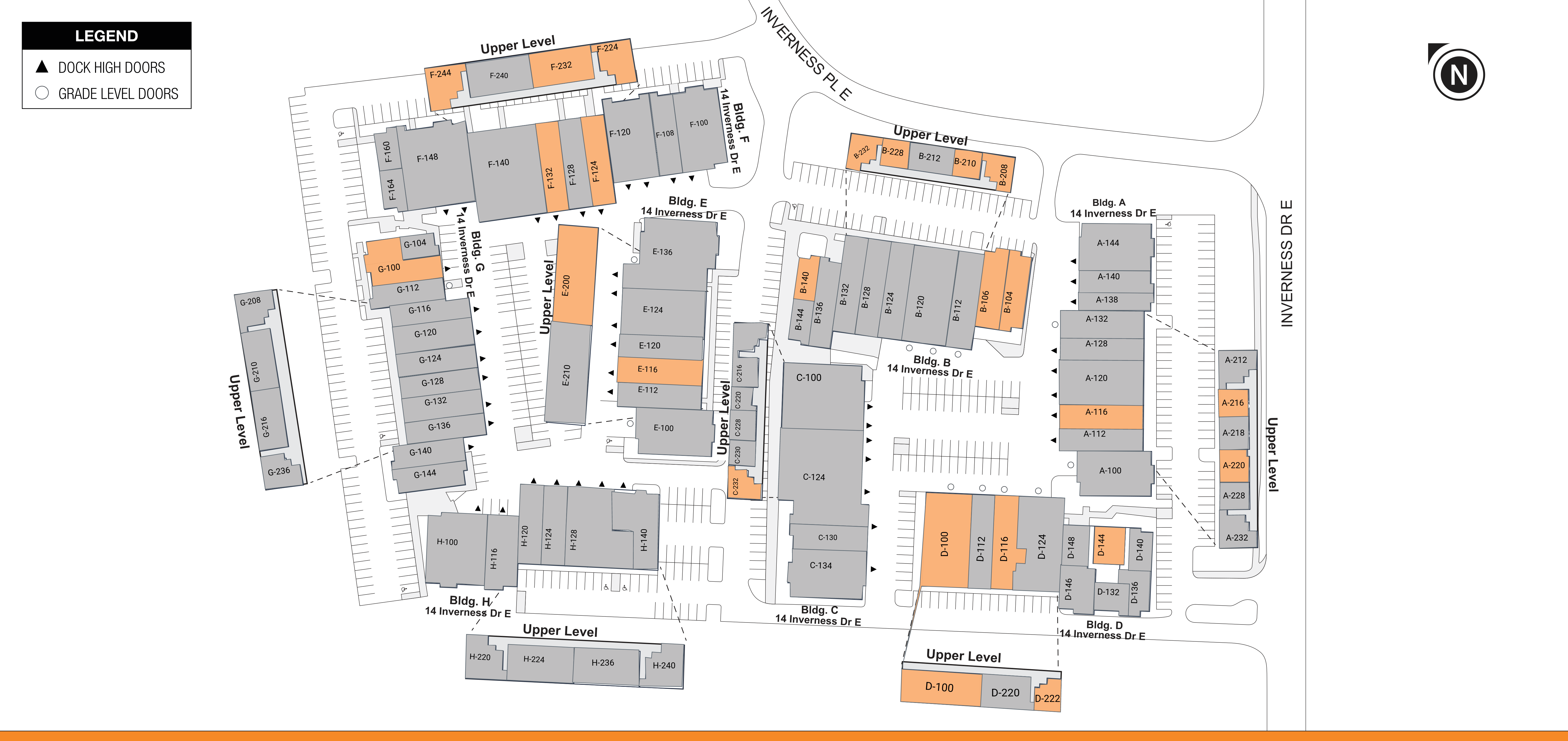 | BUILDING | SUITE | Total size | Office Size | Office % | Type | Clear HT. | GL | DL | Floor plan | Photos |